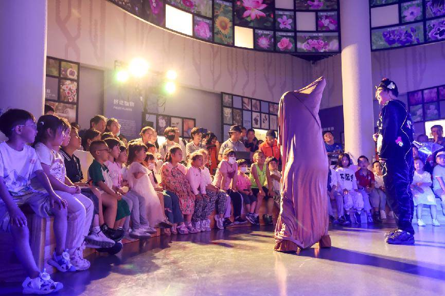 下午,展厅里响起科普剧演出即将开始的广播声,观众们循声步入展楼二层的植物世界展厅。这里,由国家自然博物馆志愿者团队自编自导自演的科普剧《再生之王》开场了,围绕着一片环形场地,观众们里三层外三层挤了个水泄不通。“赛先生”与魔术师合作,通过魔术与表演结合的方式,认识了许多具有“再生”功能的生物。当魔术师变出一捧玫瑰花瓣洒向观众席,祝贺国家自然博物馆正式揭牌一周年时,小朋友们发出了惊喜的呼叫声。演出结束时,潮水般的掌声久久未歇。掌声既是对这出精彩的科普剧的鼓励,更是对国家自然博物馆志愿者老师们的肯定。