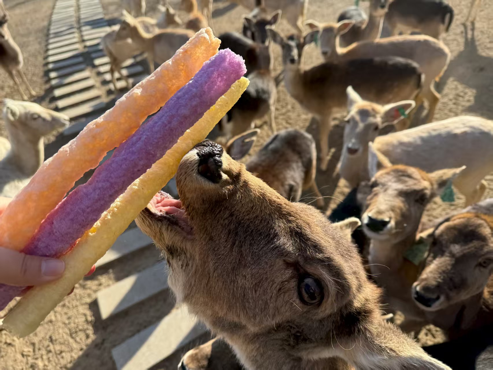 来麋鹿苑最重要的体验是“小小饲养员”的亲子项目。麋鹿中心科研人员研发的《新型饲料配方及其制备方法》获得专利授权,饲料富含动物所必需的纤维素、微量元素、维生素等,产出营养结构合理、安全可靠;同时麋鹿中心推进科技成果转化,推出饲料产品,将产品应用于生态科普体验,服务于公众,根据不同配方呈现不同颜色,娱乐性强。