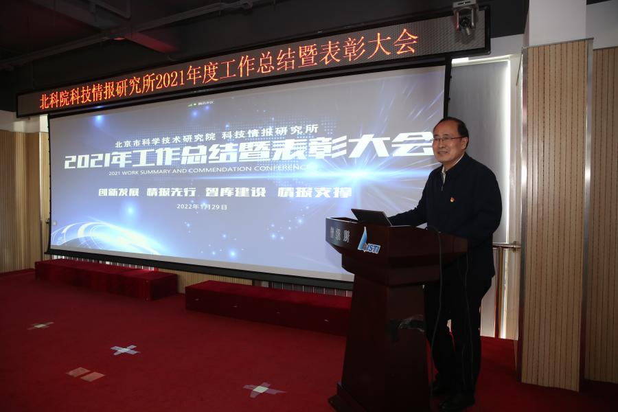 卫万顺充分肯定了科技情报所所领导班子取得的工作成绩,以党建过硬,成果过硬,作风过硬“三个过硬”对科技情报研究所2021年工作进行了总结。并就下一步工作提出建议:一是提高政治站位,从政治高度做好科技情报工作,严把意识形态关;二是软科学研究要有硬支撑,充分采用信息技术、大数据等方法和手段来提升情报服务研究水平;三是准确定位北科院科技情报研究所的产品、成果高质量发展,提升为北京乃至全国科创中心建设的影响力!