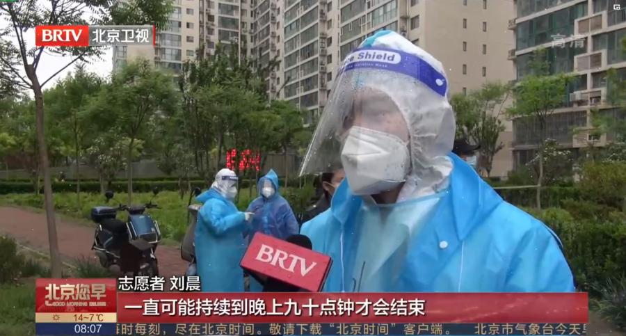 “请大家正确佩戴好口罩,在入口处出示健康报扫码结果,保持两米线距离,做好个人防护”的声音,响彻在朝阳区来广营乡三号院社区的核酸检测点现场。北京市新技术应用研究所有限公司团支部书记刘晨,在看到朝阳团区委发布的倡议书后,第一时间主动回社区报到,积极地准备参与到社区核酸检测、物资保障等各项工作中去,4月25日第一轮核酸检测结果出来后,没有丝毫犹豫,快速加入到了社区防疫志愿者队伍。