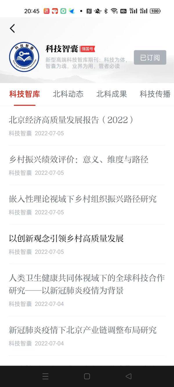 目前该号开设“科技智库”“北科动态”“北科成果”“科技传播”四个栏目,通过图文、音频、视频等多种传播形式,呈现《科技智囊》精品文章以及北科院的科研成果、科学决策等内容,为用户提供丰富的学术资源,助力科技创新发展,助推科技智库建设。