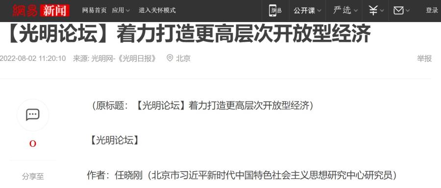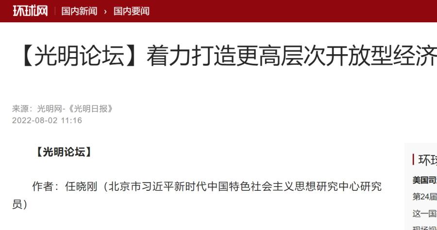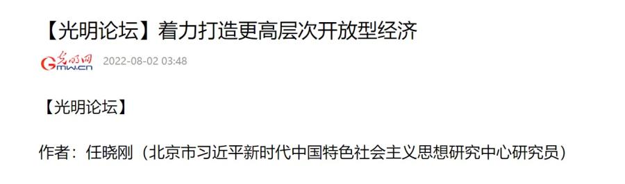 近日,科技智库中心主任任晓刚研究员发表在《光明日报》评论版文章《着力打造更高层次开放型经济》,获得中宣部、中央网信办的充分肯定,并被“全网推送”。新华网、人民网、光明网、中国新闻网等中央主要新闻网站在首页显著位置转发了此文,并有数十家地方新闻网站对该文进行了全文转发,引发了广泛关注,产生了良好的社会效果。