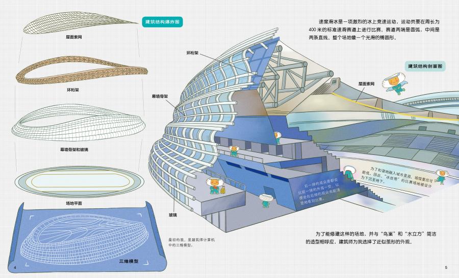 这套书有两种打开方式,采用独特的前后双向阅读,从正面阅读让孩子了解冰丝带的建设过程;从反面阅读了解水立方变身冰立方的改造过程。冬奥建筑将在书的中间相遇,共构冬奥全景画卷! (北京科学技术出版社有限公司)