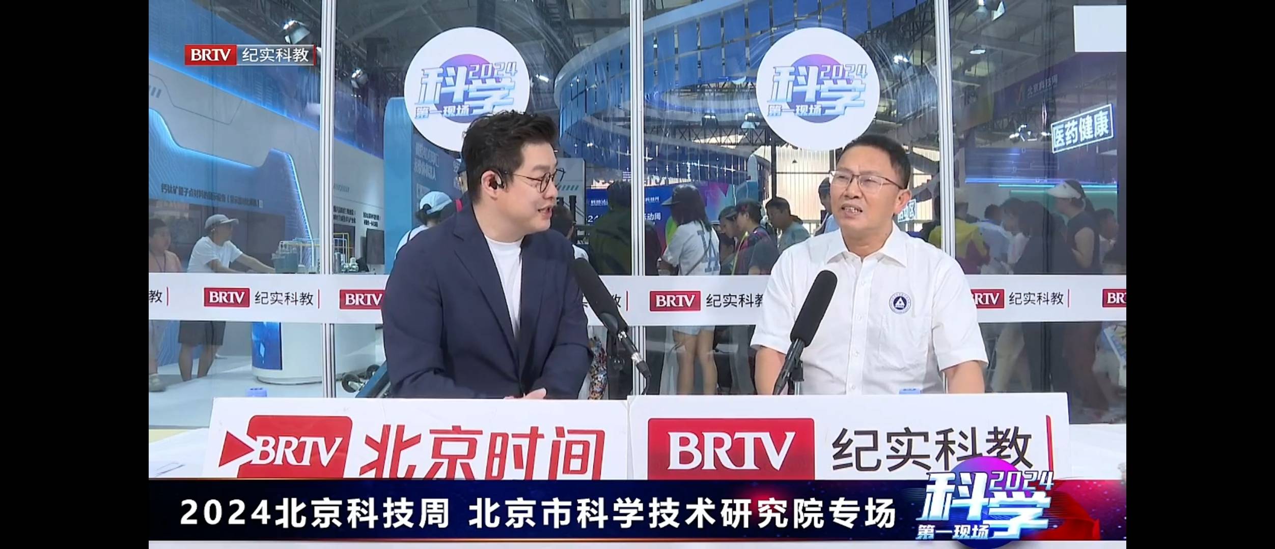 科技周活动前夕,北科院发布了活动预告宣传片,为活动的开展营造了浓厚氛围。6月1日上午,伍建民、刘子亮做客北京广播电视台科教纪实频道《科学第一现场 | 北京科技周—科技让生活更美好》栏目直播间,向广大市民介绍了北科院2024年科技周展项和“十四五”以来的科技创新情况。