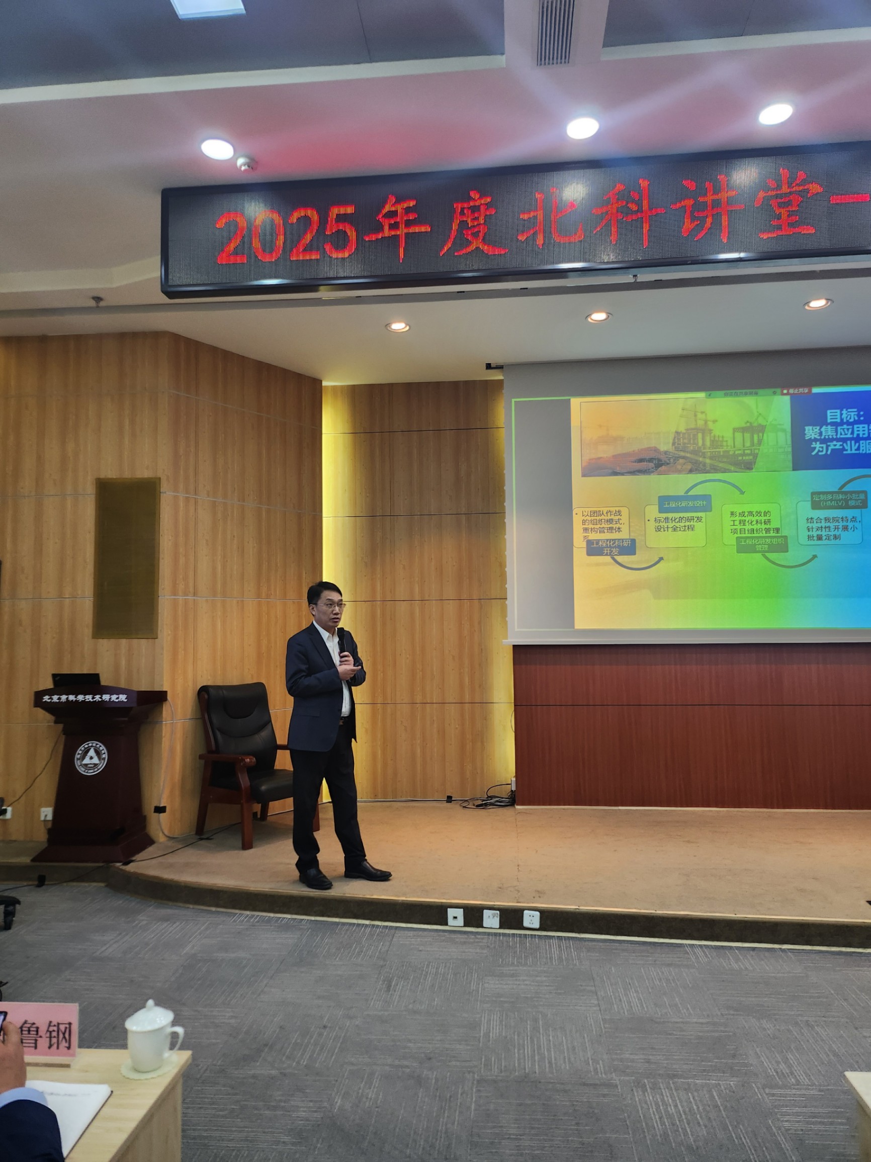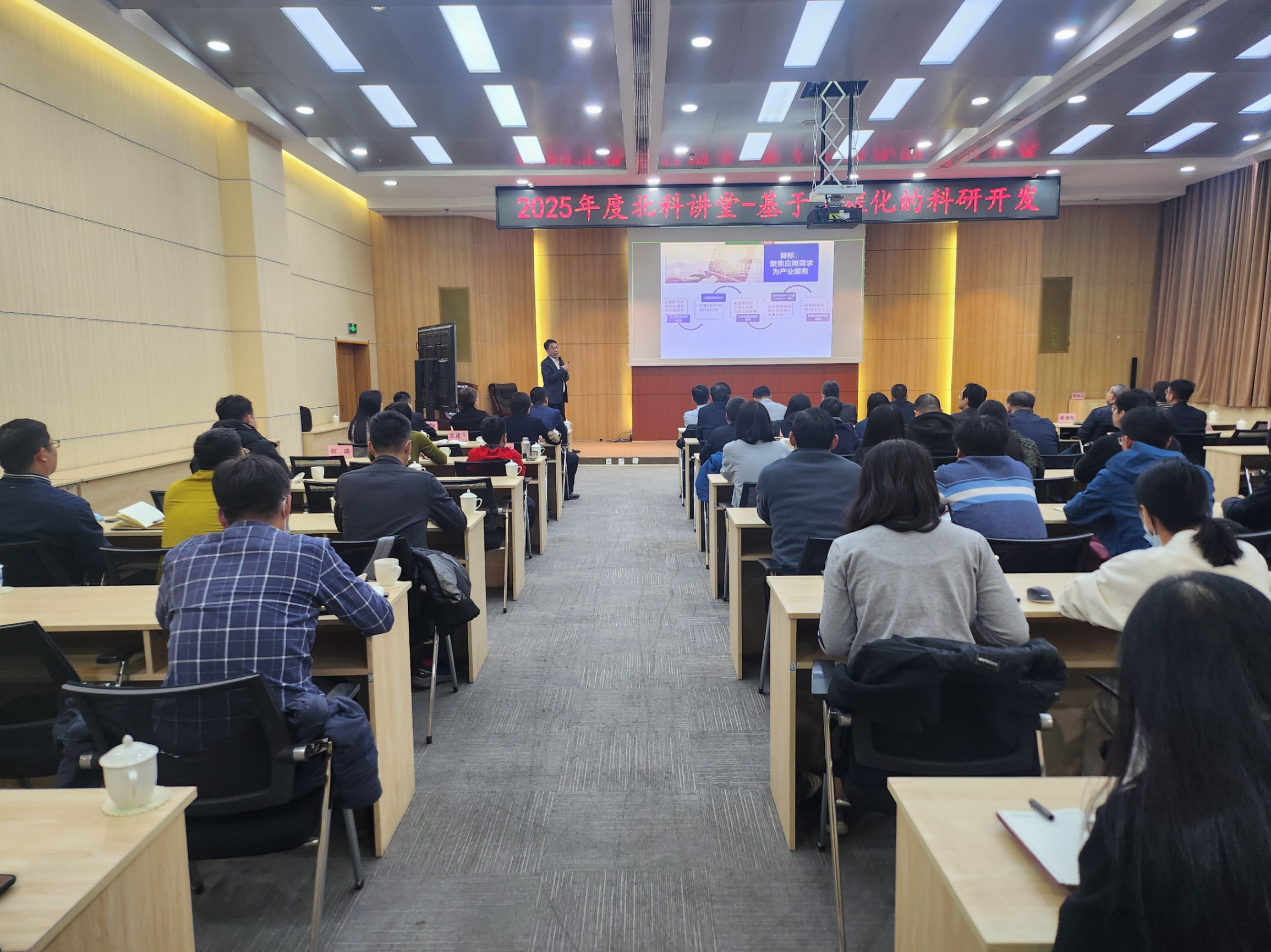 为深入贯彻落实党的二十届三中全会与全国两会精神,积极探索科研事业单位企业化管理,加快推动科技创新和产业创新深度融合,推动科研成果高效转化与应用,3月20日下午,院学术委员会组织2025年度“北科讲堂”专题讲座。本次讲座由院党组成员、副院长、院学术委员会常务副主任邵锦文主讲,主题为“基于工程化的科研开发”。讲座采取线上线下相结合的方式,院机关、内设机构及院属单位共百余人参加。