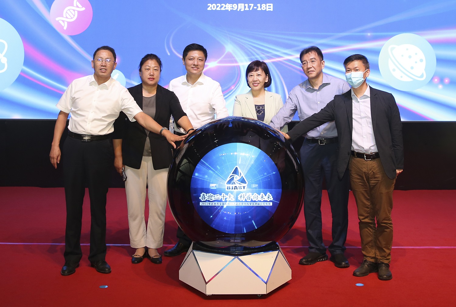 与会领导和特邀嘉宾共同上台触摸“科技之球”,北科院专场正式拉开帷幕。