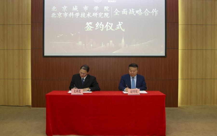 签约前,双方共同观看北京城市学院与我院的宣传片。随后,刘林和伍建民分别代表双方签署全面战略合作协议。北京城市学院与我院作为市属的高等院校和科研院所,服务北京国际科技创新中心建设,双方具有共同的时代使命。根据全面战略合作协议,双方将从以下六个方面推进:共同开展习近平新时代中国特色社会主义思想理论研究,共同撰写高水平的、有影响力的理论文章;共同开展高水平人才培养,聘用我院研究人员为北京城市学院导师,共同培养高水平应用型人才;共同探索科教创新平台建设,联合开展科研合作,并申报国家和北京市科技项目;共建实习实践基地,成立联合指导教师团队,提高学生研究问题解决问题的能力;共同培养青年教师,定期举办论坛会议等学术、科研、产业交流活动;结合北京城市学院教育资源和我院科普资源优势,开展科普教育合作。