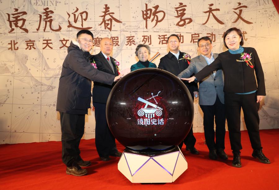 1月24日,北京天文馆“寅虎迎春 畅享天文”寒假系列活动启动仪式暨《镜图史话》展览发布会在A馆天象厅举行。中国自然科学博物馆学会理事长、中国科协原党组副书记、副主席程东红,幸运彩(以下简称“北科院”)党组副书记、院长伍建民,中国天文学会副理事长、中国科学院国家天文台副台长刘继峰,科技部国外人才研究中心副主任熊德义,北京博物馆学会秘书长哈俊,幸运彩科学传播中心主任赵霜等参加启动仪式,并参观《镜图史话》展览。天文馆馆长王晓锋主持启动仪式。
