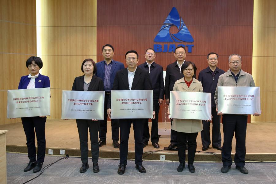 会上,贾明雁和邵锦文分别代表市城市管理委和市科研院签署战略合作协议。随后,贾明雁、邹焱星、伍建民、邵锦文为首都城市管理研究中心揭牌,并为市科研院城市安全与环境科学研究所、院资源环境研究所、院城市系统工程研究所、院信息与人工智能技术研究所、院科学传播中心、院科技智库中心、北京市计算中心有限公司、北京市城市管理研究院、北京市环境卫生涉外服务中心、北京市城市管理高级技术学校等10家首批首都城市管理研究中心研究基地授牌。
