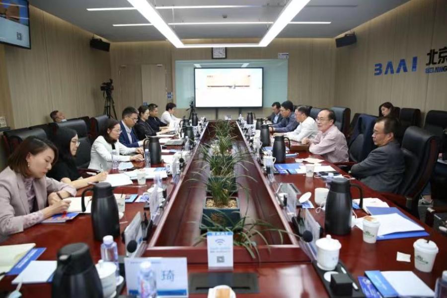 高新技术发展处处长孙力强,计算中心有限公司董事长、总经理刘彤,信息与人工智能技术研究所副所长张莹分别介绍了北科院的发展概况和各自领域的工作进展,并提出了与智源研究院的合作意向。
