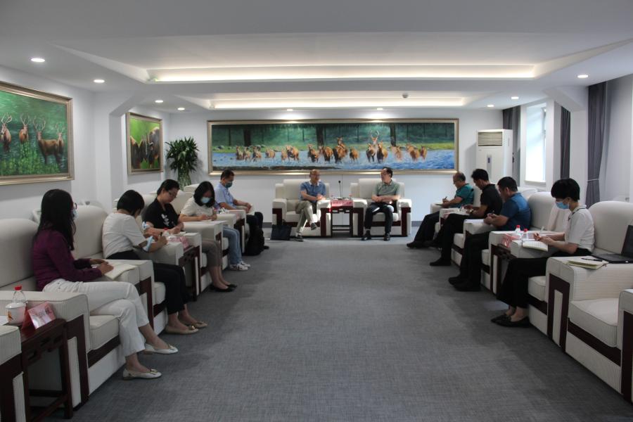 麋鹿中心党总支书记、主任白加德及领导班子成员等陪同调研。 (刘佩 文/摄)