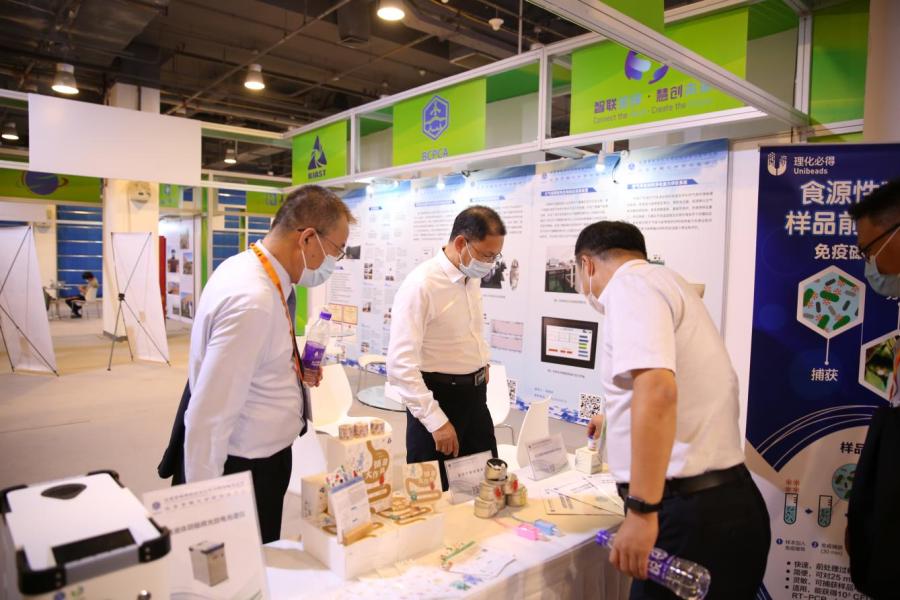 北科院院属单位分析测试研究所主要围绕分析测试技术,聚焦食品安全、环境保护、新材料、药品化妆品、生物技术、国产科学仪器等重点领域,开展科技创新活动和科技服务工作。本次展出环境水体金属污染元素现场快速检测技术及装置、高分子材料老化实验装置、空气净化材料净化能力评价系统及装置、大气细颗粒物生物效应实验装置等。其中,环境水体金属污染元素现场快速检测技术,围绕工业废水、城市废水等环境水体中TL、Hg等金属污染元素,可实现现场快检和突发应急使用;高分子材料老化实验装置,可有效模拟自然界中高分子材料老化和降解过程的微型环境,实现高分子材料在机械磨损、光照、湿热等作用下崩解形成微塑料直至完全降解的老化过程,计算出塑料、橡胶等高分子材料的使用寿命。