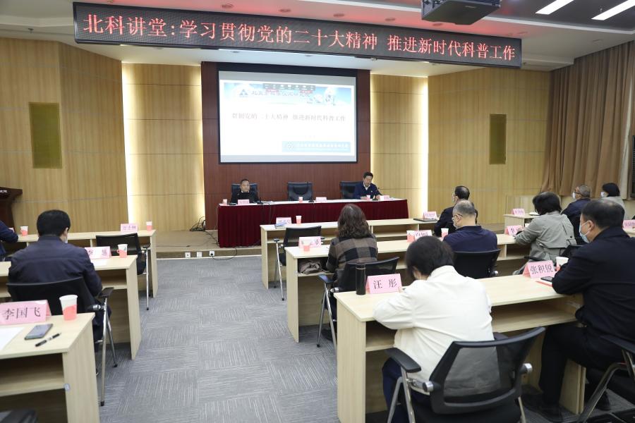 伍建民在讲话中指出,党的二十大报告把教育、科技、人才放在一起统筹部署,以“实施科教兴国战略,强化现代化建设人才支撑”为题目作为一个重要部分,充分体现了教育、科技、人才在全面建设社会主义现代化国家中的重要地位,体现了科技是第一生产力、人才是第一资源、创新是第一动力,以及人才强、科技强、国家强的发展路径。这些新思想新论断新要求为推动我国成为教育强国、科技强国、人才强国指明了方向、提供了根本遵循。举办这次北科讲堂,主要任务就是学习贯彻党的二十大精神,对推进北科院科普工作、促进科技创新与科学普及协同发展提出要求、作出安排。