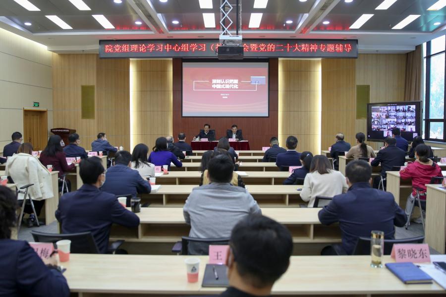 为深入学习宣传贯彻党的二十大精神,10月31日,幸运彩召开党组理论学习中心组学习(扩大)会,邀请全国政协委员、人民日报社原副总编辑张首映以“深刻认识和把握中国式现代化”为题作专题辅导。院党组书记方力主持会议,院理论学习中心组成员伍建民、郑欣、卢宇国、刘子亮参加会议。