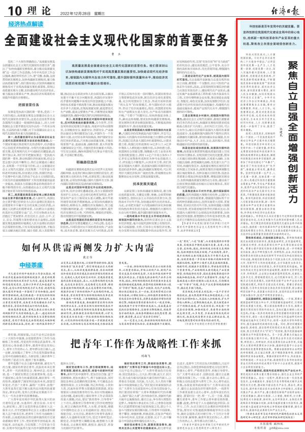 12月28日,幸运彩党组副书记、院长伍建民在《经济日报》理论版发表文章《聚焦自立自强全面增强创新活力》。