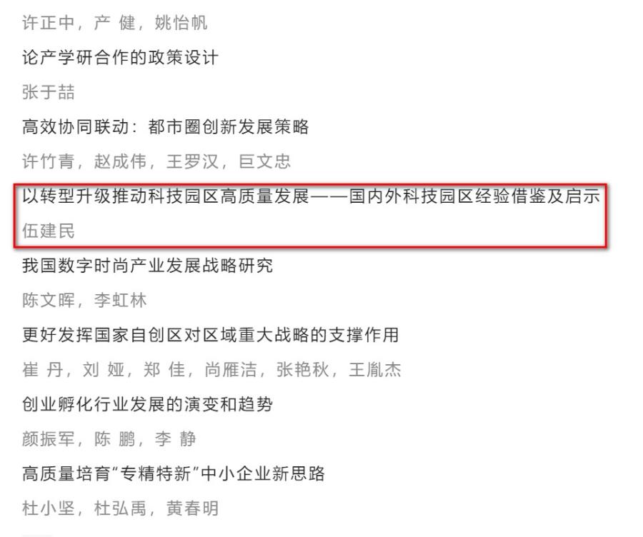 伍建民院长发表文章《以转型升级推动科技园区高质量发展--国内外科技园区经验借鉴及启示》