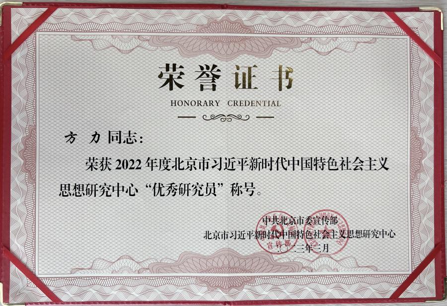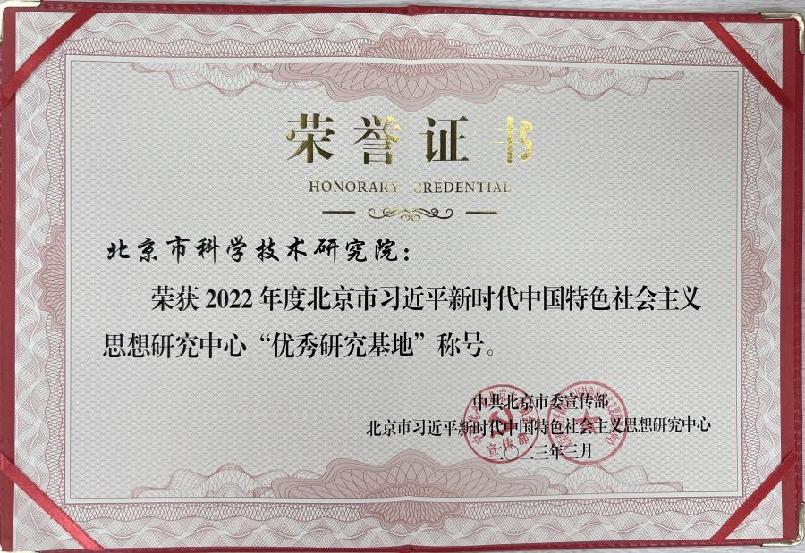2022年,北科基地发表“三报一刊”理论文章38篇,其中,以“北京市习近平新时代中国特色社会主义思想研究中心”名义发表文章为30篇,头条文章11篇,超额完成16篇的年度任务文章;获批北京研究中心项目3项,其中重大项目1项、重点项目1项、一般项目1项;方力研究员和任晓刚研究员分别主持的2020年度北京研究中心重大和重点项目提前完成结题鉴定,且结题鉴定等级均为优秀;3人获北京市宣传文化系统“四个一批”人才称号。
