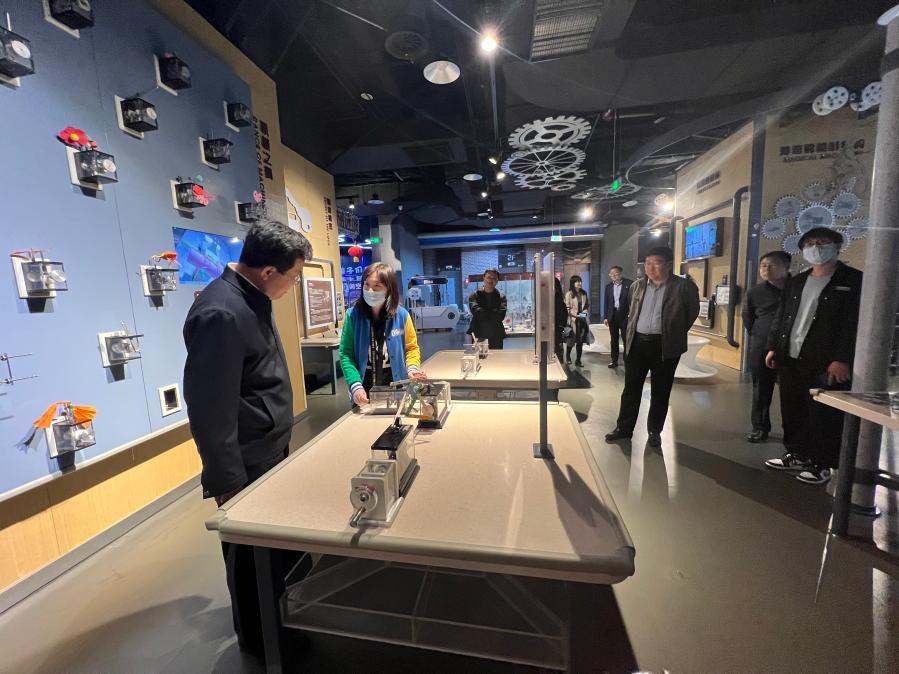 会后,刘子亮等参观了体验中心蒙空间、创空间和粹空间等。赵军对体验中心场馆设计、展陈创意以及课程特色等情况作了详细介绍。