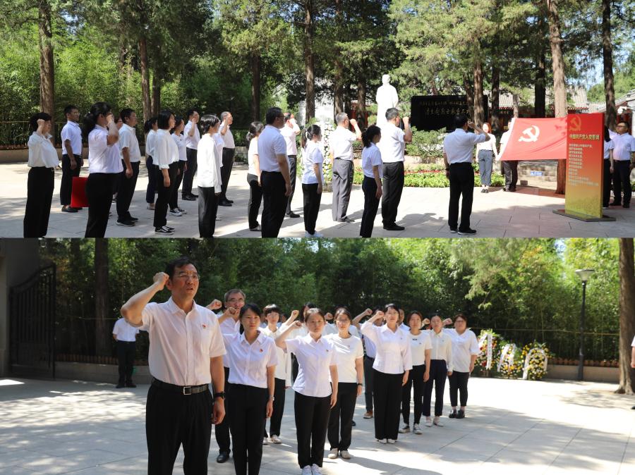 在中国共产党成立102周年之际,为深入学习宣传贯彻党的二十大精神,扎实开展学习宣传贯彻习近平新时代中国特色社会主义思想主题教育,传承红色基因,弘扬爱国主义精神,6月30日上午,院党组带队赴李大钊烈士陵园开展“缅怀英烈祭忠魂,不忘初心思奋进”七一主题党日活动,祭扫缅怀烈士,举行老党员重温入党誓词、新党员入党宣誓活动,并召开新党员座谈会。