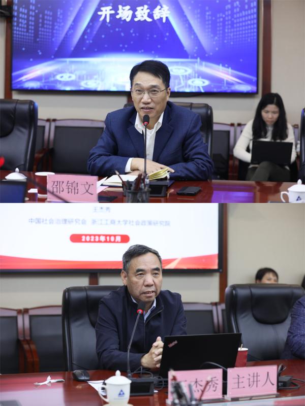 随后,本次沙龙特邀中国社会治理研究会会长王杰秀教授作了精彩的主旨报告《科技赋能养老服务高质量发展》。该报告从人口老龄化现状与趋势、人口老龄化带来的科技赋能新需求和提升科技在养老服务中的作用等维度,用大量直观的数据图表、生动易懂的案例,全面阐述了养老服务体系面临的巨大冲击和挑战,高屋建瓴地解读了养老产业中科技赋能的现实意义,并对我院在智慧养老方向上的研究工作进行肯定和提出了希望。