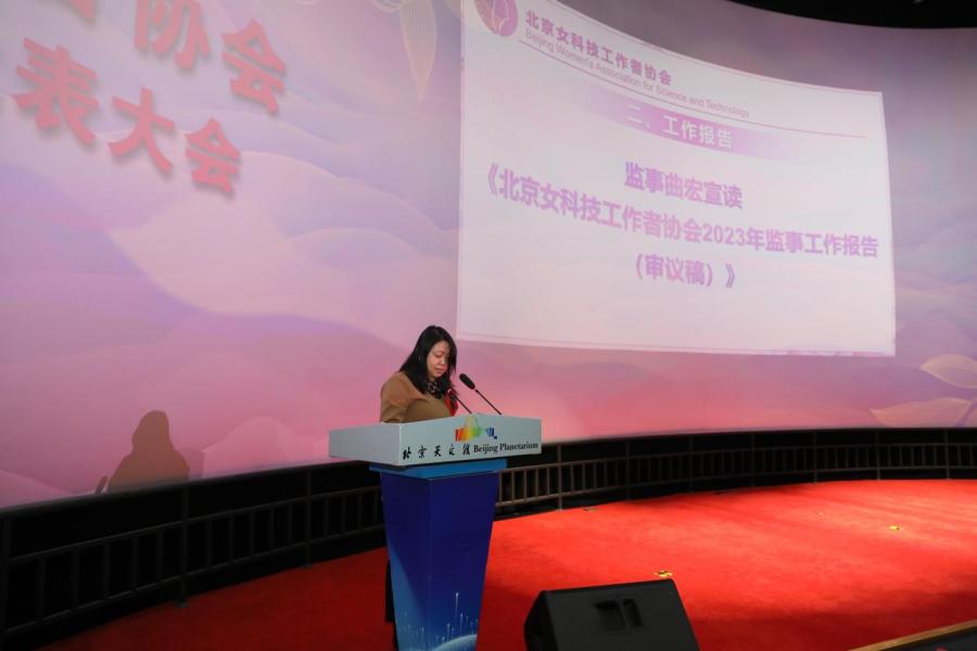 在工作报告环节,北京女科协秘书长魏永莲作了《北京女科技工作者协会2023年工作报告》、《北京女科技工作者协会2023年财务报告》。监事曲宏作了《北京女科技工作者协会2023年监事报告》。