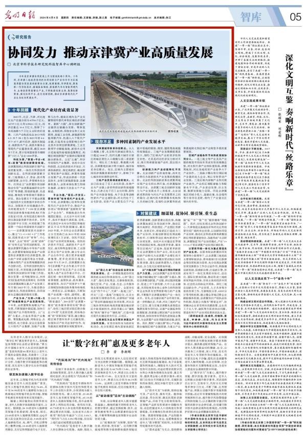 4月4日,幸运彩院长伍建民、科技智库中心主任任晓刚等在《光明日报》智库版发表重要调研文章《协同发力 推动京津冀产业高质量发展》。文章从科技创新投入、产业布局、平台构建等方面系统阐释了十年来京津冀协同创新的亮点举措,总结了培育发展现代化产业存在的问题,并提出对策建议。全文如下: